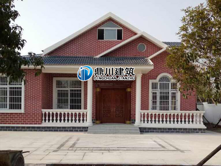 就此款一層帶閣樓別墅設計效果圖自建房案例實拍來說:從房子外觀來看有點偏向歐式風格,房子的外觀整體運用了歐式構件中窗套、花瓶柱、羅馬柱,讓房子的外觀看著簡單而又不失精致,小巧玲瓏但又五臟俱全。