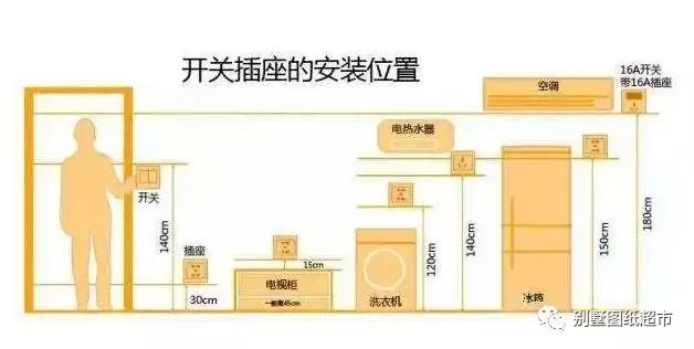4、電冰箱插座距地面0.3米或1.5米(根據冰箱位置面定),且宜選擇單三級插座;