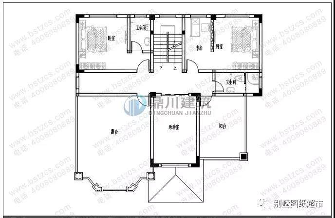 三 層:活動(dòng)室、臥室(附衛(wèi)生間)、臥室(附書房)、衛(wèi)生間、陽臺(tái)、露臺(tái)