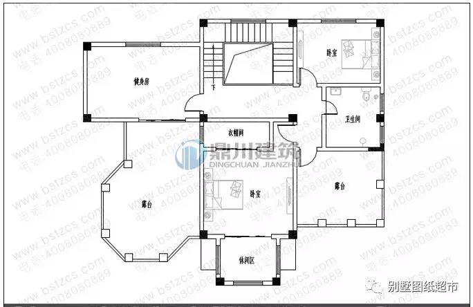 三 層:健身房(附露臺(tái))、臥室(附衣帽間,休息區(qū))、臥室、衛(wèi)生間、露臺(tái)