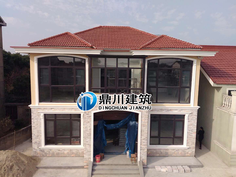 今天介紹的是一款農村二層小別墅設計效果圖建房實拍。磚混結構的形式,開間12米,進深11.6米,主體僅花了25萬左右就搞定了。是不是有點難以置信,但是事實確實就是這樣哦。這個戶主在購買了該圖紙之后,在原圖的基礎上做了改動,把原圖陽臺的部分直接改成了窗戶。雖感覺少了點通透的陽光感,但是落地窗形式的玻璃并沒有影響美感,同時還使得室內空間增加了不少,總體感覺還是挺不錯的。