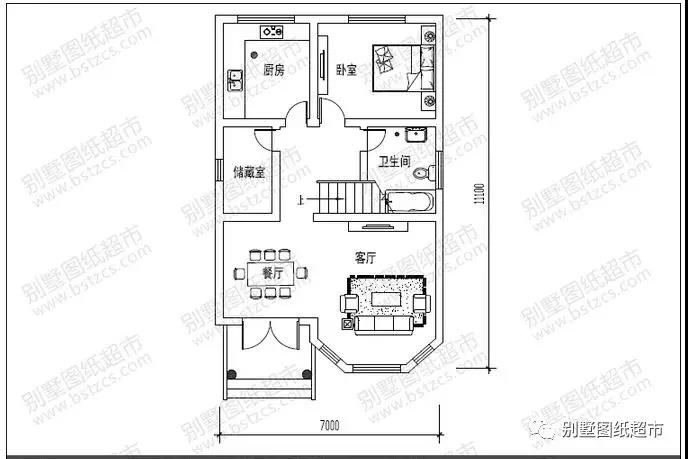 一 層:客廳、臥室(附衛生間)、廚房、餐廳、儲藏室、衛生間