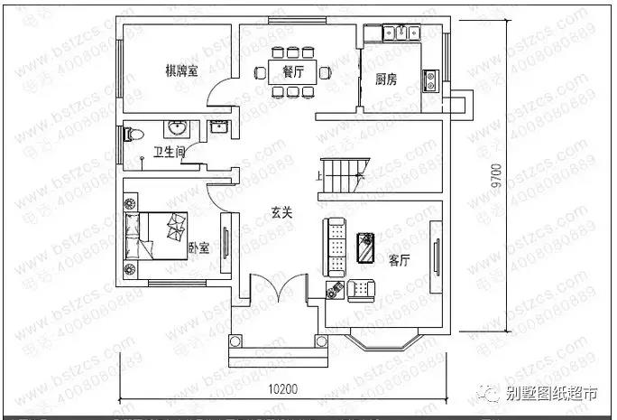 一 層:客廳、臥室(附衛(wèi)生間)、臥室、棋牌室、廚房、餐廳、衛(wèi)生間