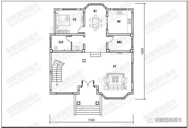 一 層:客廳(中空)、臥室、棋牌室、廚房、餐廳、儲(chǔ)藏室、衛(wèi)生間