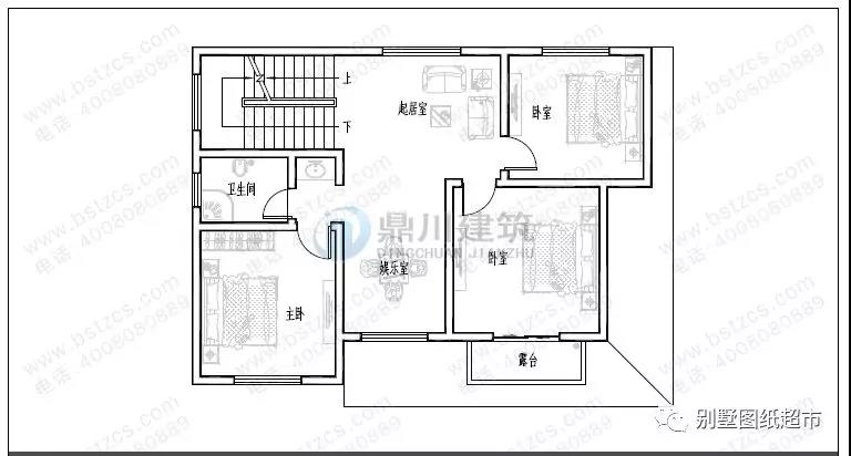 二 層:客廳、臥室(附衛(wèi)生間)、臥室、兒童房、棋牌室、衛(wèi)生間、露臺(tái)