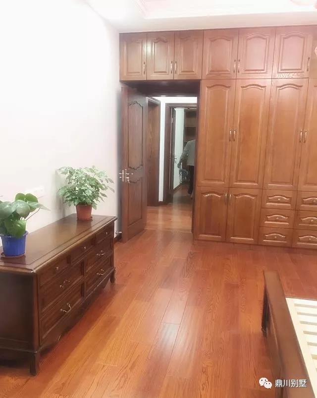 主臥,主臥很大,衣柜是做到頂?shù)募t木衣柜