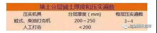 4.碾壓密實:填土分層鋪土的厚度和壓實遍數,應結合壓實機具,參照表上進行;