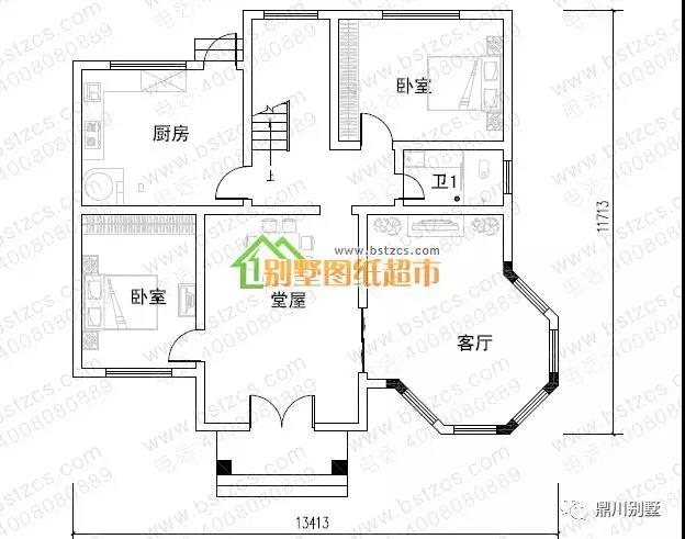 一 層:堂屋、客廳、2臥室、廚房(兼餐廳)、衛生間