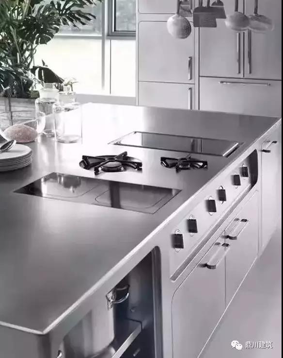 家里裝修偏工業(yè)風(fēng)格或者喜歡金屬質(zhì)感的,可以選擇不銹鋼材質(zhì)的臺面。不銹鋼臺面號稱是最易清理的臺面,比如酒店后廚等基本都是不銹鋼臺面,它不僅耐火耐高溫易清潔,而且還抗菌。