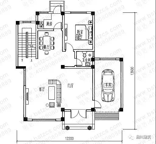 一 層:客廳、臥室、棋牌室、廚房、餐廳、衛生間、儲藏室、車庫