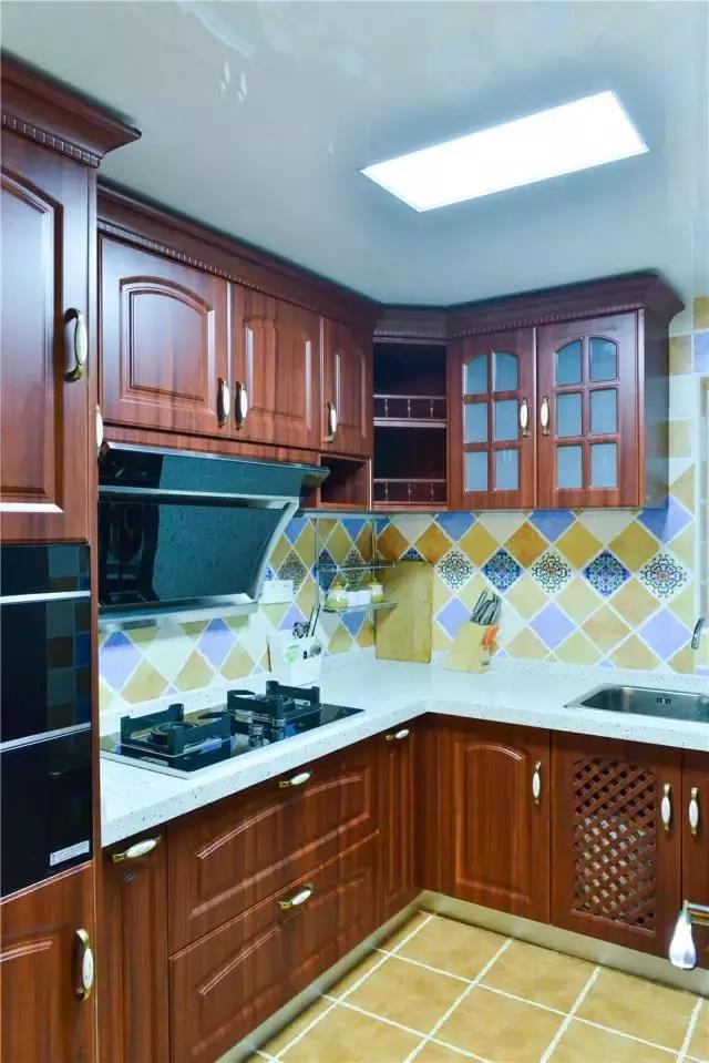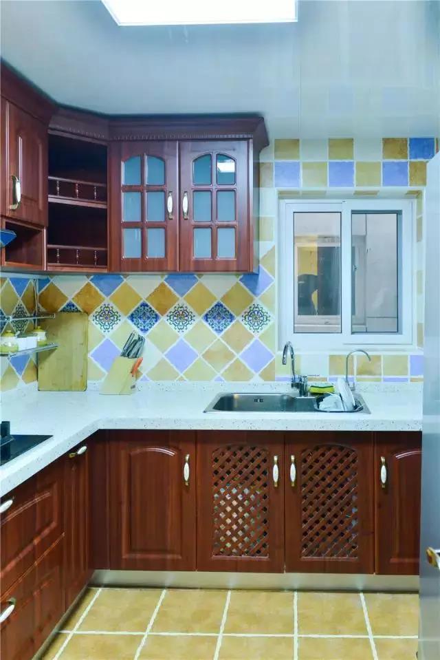 ▲廚房用了花色墻磚,很有活力,與這樣的櫥柜搭配起來效果很好