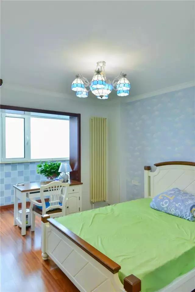 ▲次臥是地中海田園風格的,這是老婆喜歡的風格,地中海風格的吊燈很好看,白色與原木色搭配效果很棒。