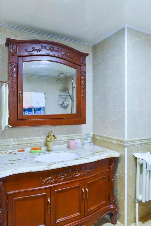 ▲主衛干區,古典風格的鏡柜和洗手池柜,很好看