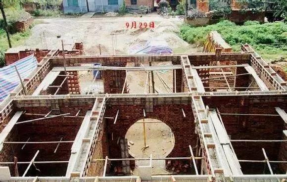 連續幾天的好天氣,蓋房子的進度也很不錯。一樓墻體已經砌好,通粱和柱子的鋼筋也已放好。