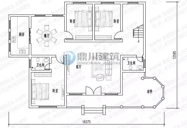 一 層: 客廳、臥室(附衛(wèi)生間)、2臥室、廚房、餐廳、衛(wèi)生間、涼亭