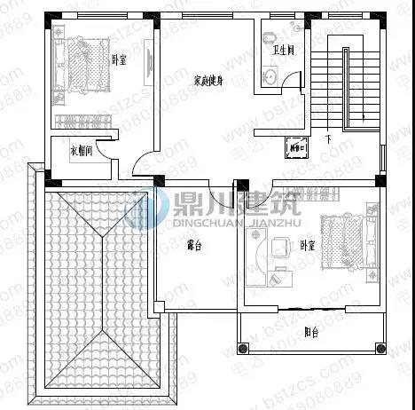 三 層: 健身廳、臥室(附衣帽間)、臥室(附陽(yáng)臺(tái))、衛(wèi)生間、露臺(tái)