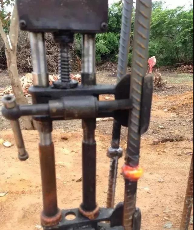 這種熱熔式的鋼筋接頭方式是業主專門找來的焊接工人用他們的三相焊接設備做的。它比傳統的搭接焊更牢固,理論上講,如果焊接合格,接頭的強度甚至優于鋼筋本身的強度!
