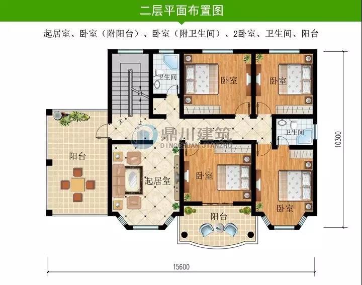 二 層:客廳、臥室(附衛(wèi)生間)、臥室、兒童房、棋牌室、衛(wèi)生間、露臺(tái)