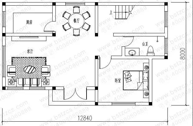 這款圖紙編號(hào): DC0057,磚混結(jié)構(gòu),主體造價(jià)為18-22萬(wàn),開(kāi)間12.84米,進(jìn)深8米,占地面積89.76平方米,建筑面積219.86平方米。