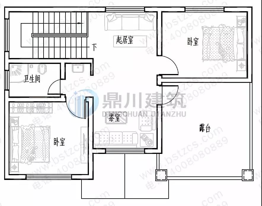 三 層:2臥室、衛(wèi)生間、露臺(tái)