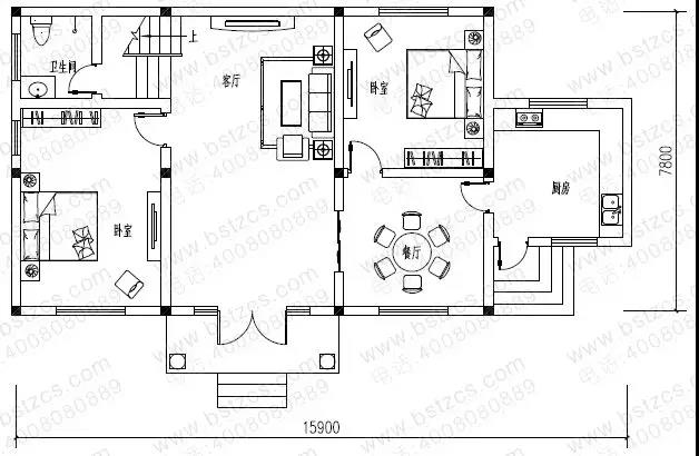 這款圖紙編號(hào): DC0136,磚混結(jié)構(gòu),主體造價(jià)為16-20萬(wàn),開(kāi)間15.9米,進(jìn)深7.8米,占地面積114.65平方米,建筑面積201.43平方米。