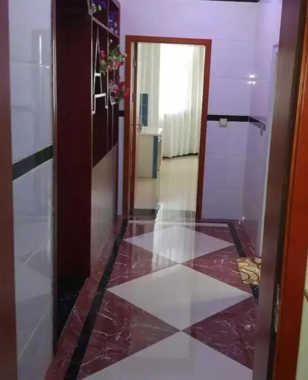 室內裝修地面、墻面都用的是磁磚裝飾,既容易打理,又不怕孩子亂涂亂畫。樓梯間根據當地的風俗設計有牌位。