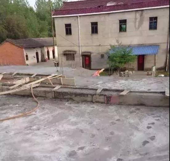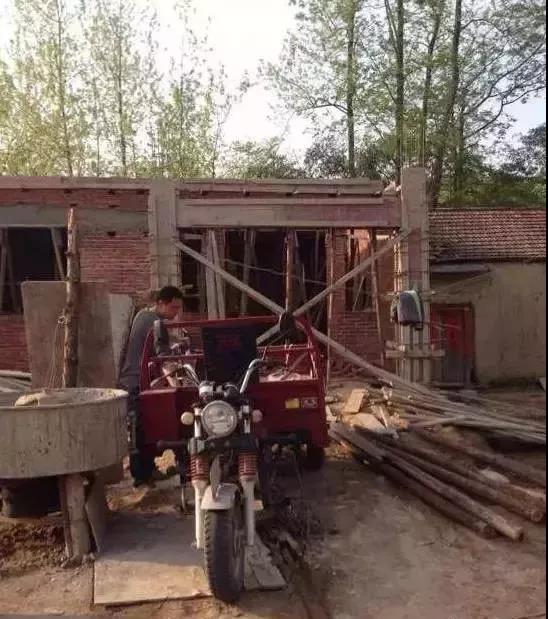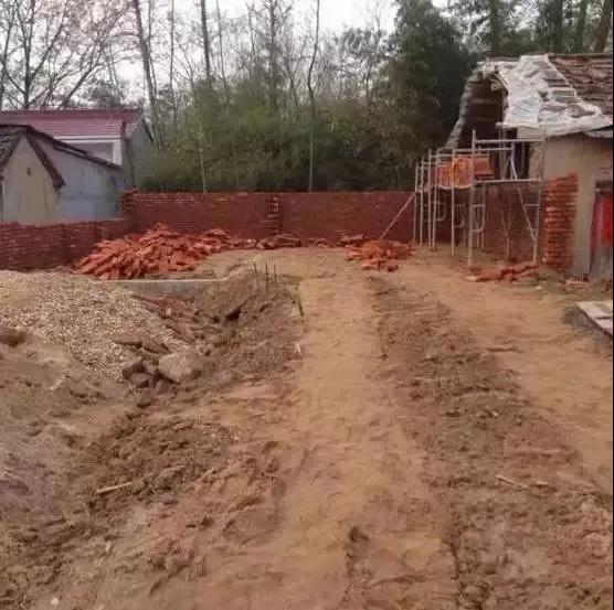 網友家里的宅基地不是很大,所以還是受限制的!施工全權交給父親監督的。房子推倒,做地基,澆混凝土,做的還是快的,因為有車,沒事就回來看一眼,就怕父親被施工隊給蒙騙了!