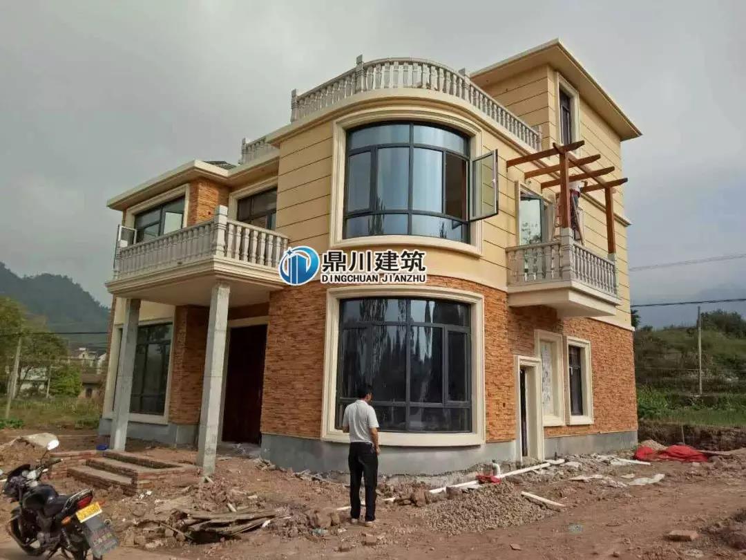 建房案例和效果圖高度一致,淺黃色的外墻俏皮又亮麗,再加上弧形的落地窗,完美的融合
