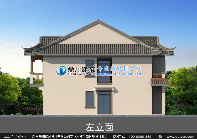 J093漂亮大氣的二層中式別墅外觀效果圖,鼎川建筑中式別墅設計圖