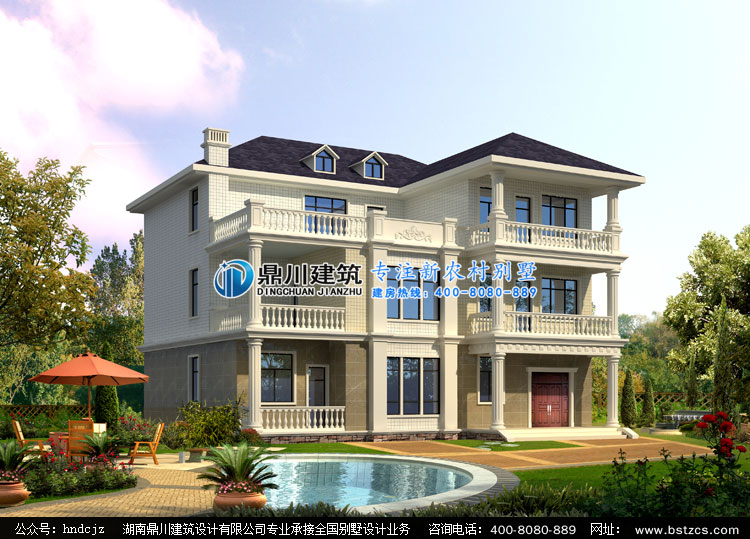 WS001三層帶露臺(tái)農(nóng)村別墅設(shè)計(jì)圖效果圖,鼎川建筑三層自建房屋設(shè)計(jì)圖