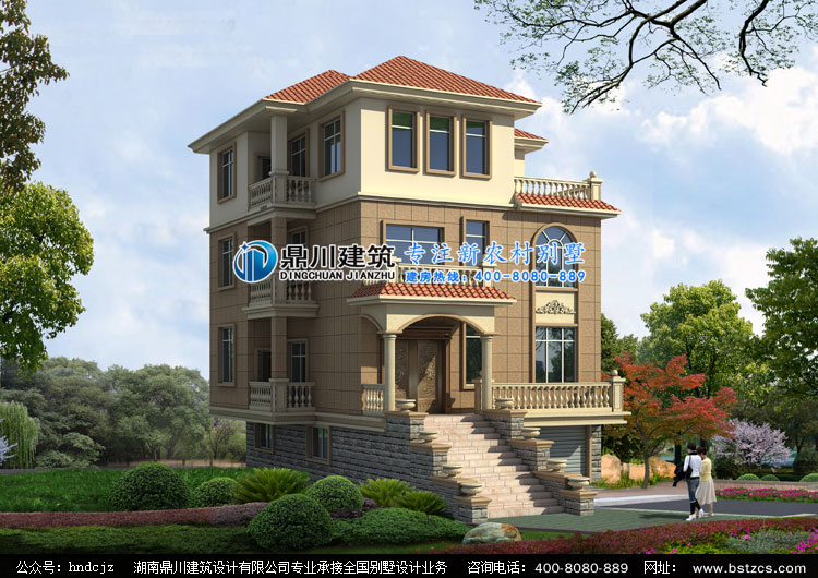 J0191三層帶底層車庫的別墅設計外觀效果圖,鼎川建筑私人定制別墅設計