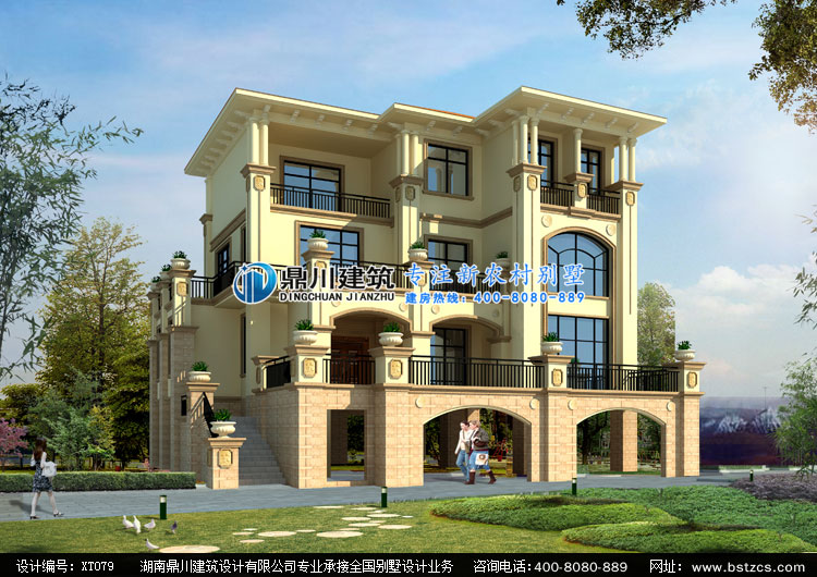 XT079四層歐式帶商鋪別墅設計圖紙外觀效果圖,鼎川建筑四層門面房別墅設計