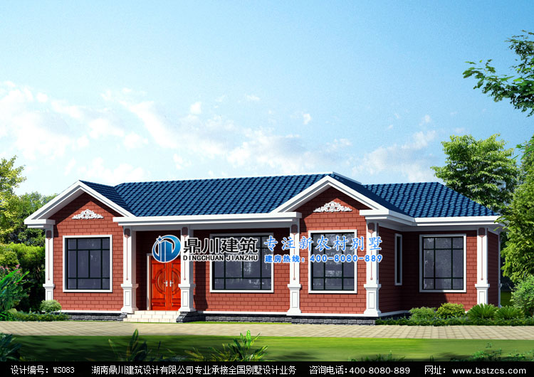 WS083農(nóng)村一層平房設(shè)計(jì)圖外觀效果圖,鼎川建筑一層農(nóng)村自建房屋設(shè)計(jì)圖效果圖