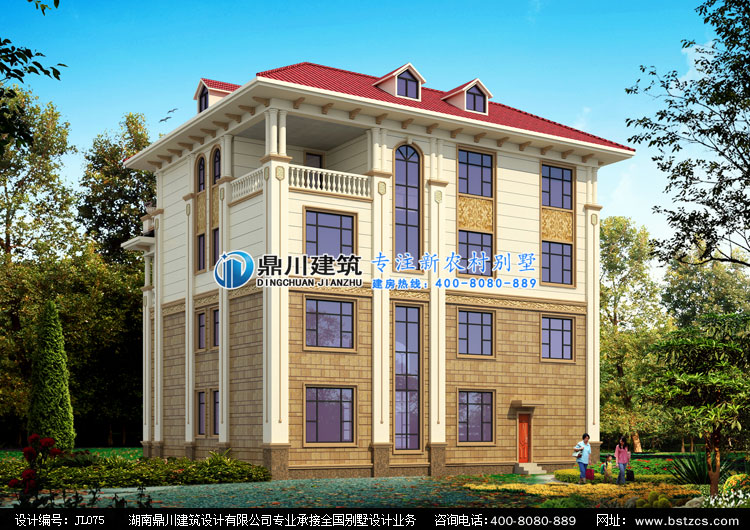 JL075豪華歐式四層別墅設(shè)計(jì)圖紙外觀效果圖,鼎川建筑四層歐式別墅私人定制設(shè)計(jì)