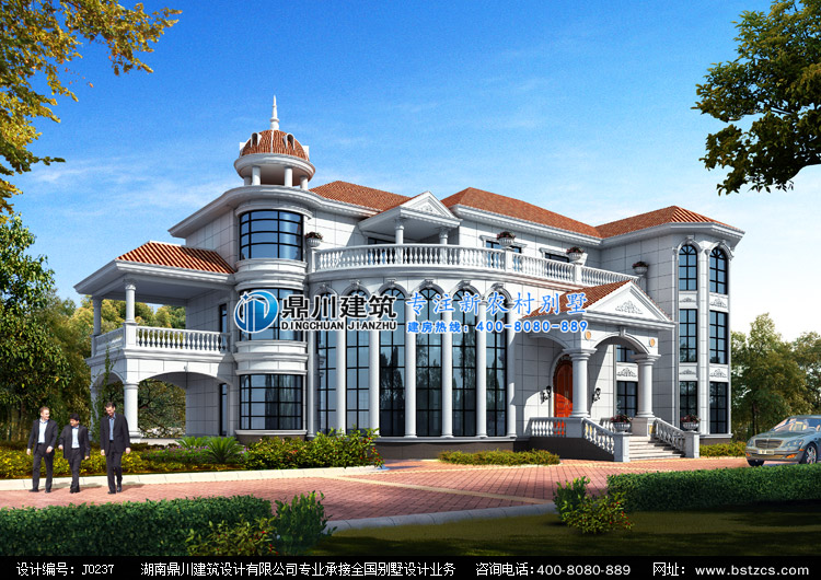 J0237三層豪華大別墅設計圖紙外觀效果圖,鼎川建筑豪華別墅私人定制設計圖