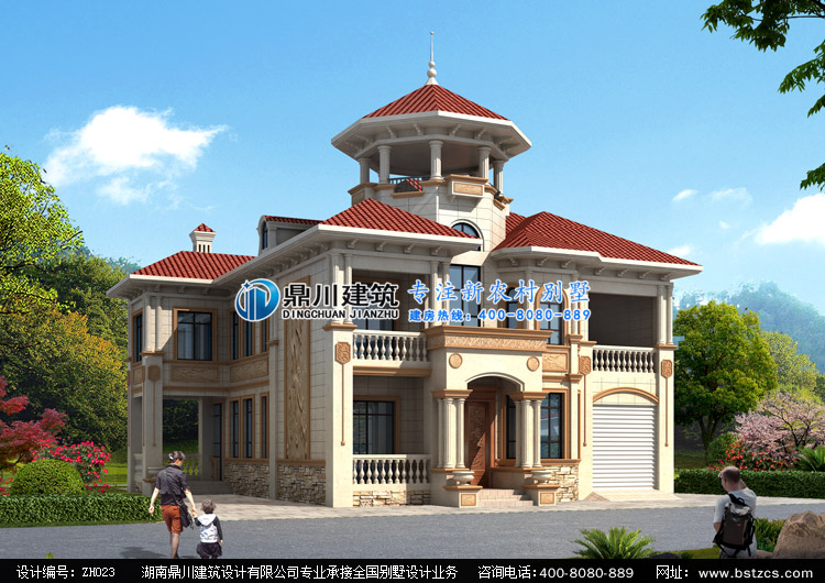 當前位置: 首頁 > 設計案例 > ZH023漂亮的二層帶涼亭歐式別墅設計外觀效果圖,鼎川建筑兩層別墅私人定制設計圖紙效果圖