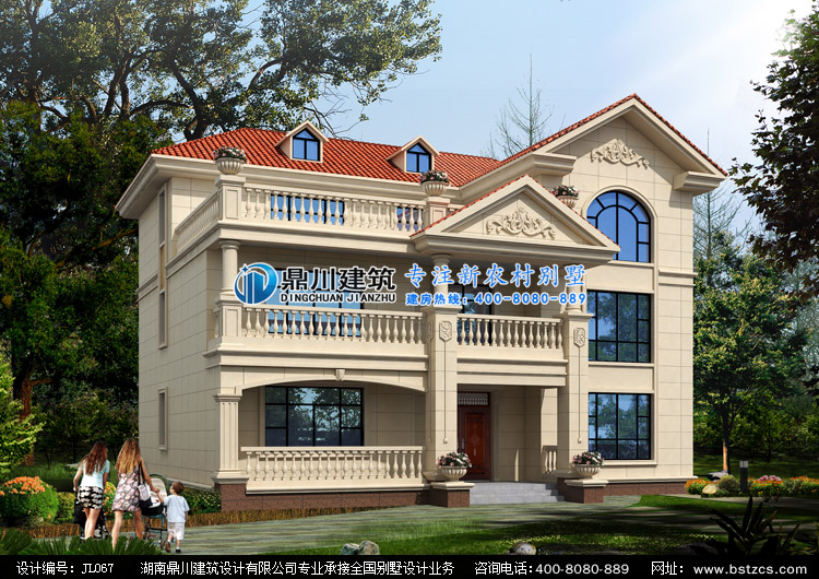 JL067三層帶露臺歐式別墅圖紙外觀效果圖,鼎川建筑農村三層別墅圖紙效果圖