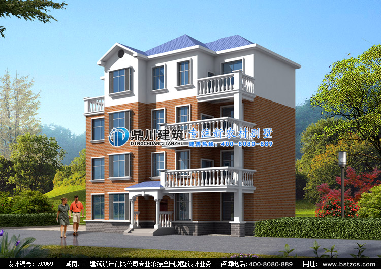 XC069四層農村房屋設計圖外觀效果圖,新農村四層別墅圖紙設計