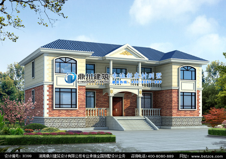 XC099農村二層自建房屋設計圖紙外觀效果圖,鼎川建筑農村兩層別墅私人定制設計