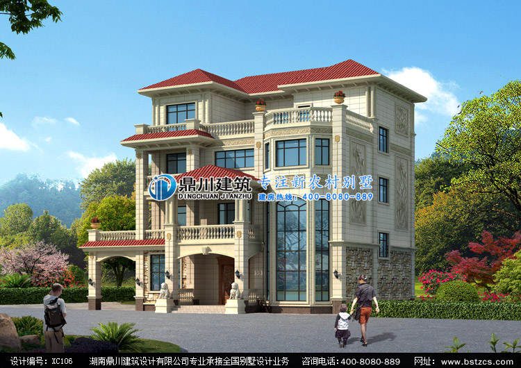 XC106復式四層歐式別墅全方位效果圖,鼎川建筑四層帶露臺別墅設計