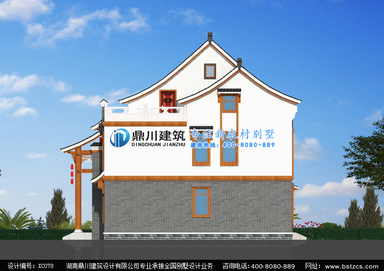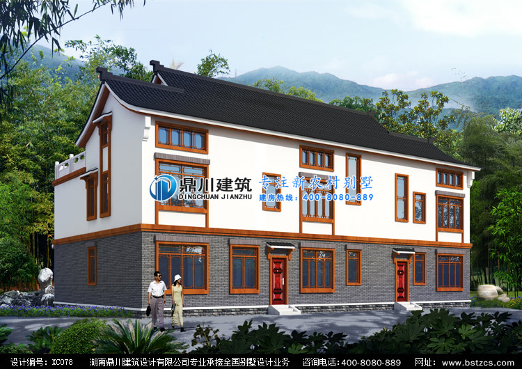 XC078農(nóng)村二層半雙拼中式別墅設(shè)計(jì)圖效果圖,鼎川建筑中式雙拼別墅定制設(shè)計(jì)