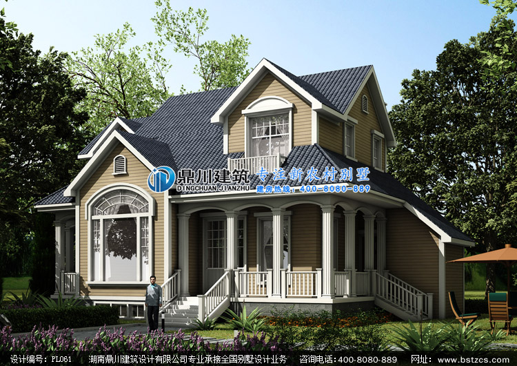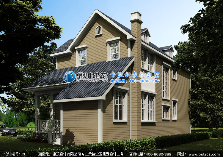 PL061漂亮的二層美式小別墅設(shè)計(jì)圖外觀效果圖,鼎川建筑鄉(xiāng)村美式小別墅設(shè)計(jì)
