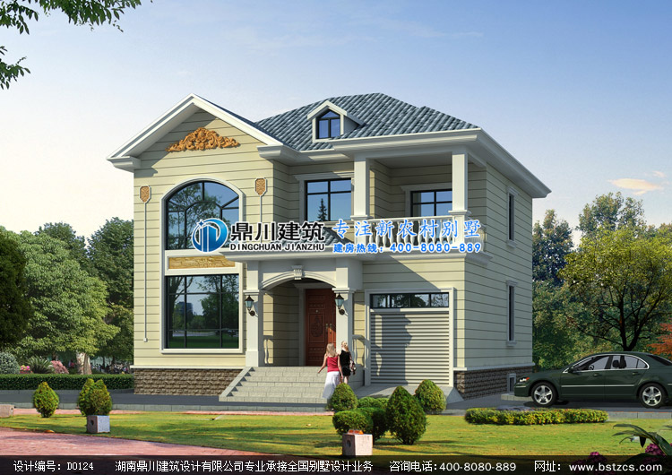 D0124農村二層帶車庫小別墅設計圖紙效果圖,兩層鄉村小別墅私人定制設計