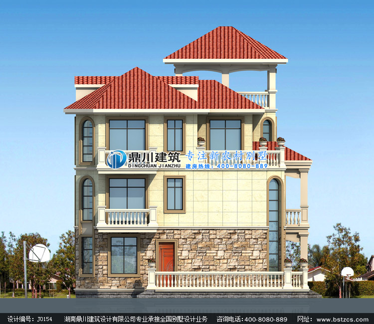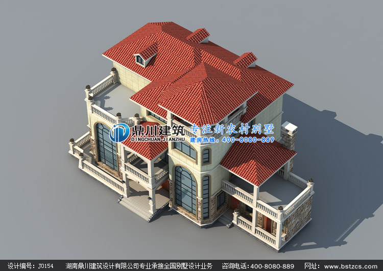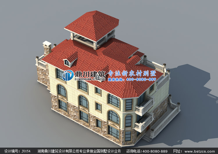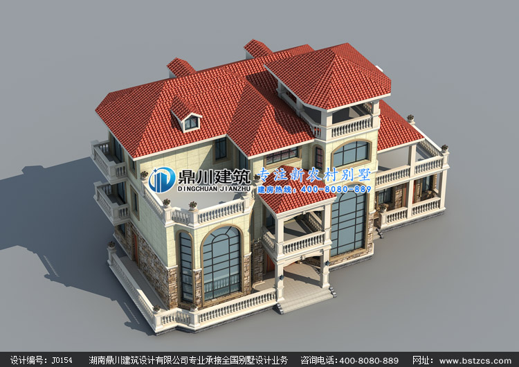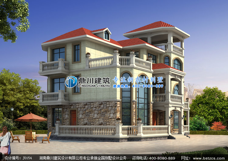 J0154復式三層帶涼亭歐式別墅設計圖紙外觀效果圖,鼎川建筑三層農(nóng)村別墅圖紙私人定制設計