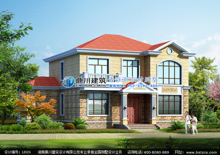 LX024農村二層小別墅自建房設計圖紙效果圖,鄉村兩層自建房屋設計圖紙