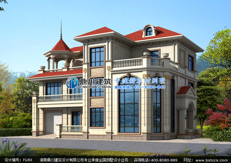 PL068農村三層歐式自建別墅設計圖紙外觀效果圖,新農村三層帶露臺別墅設計圖紙