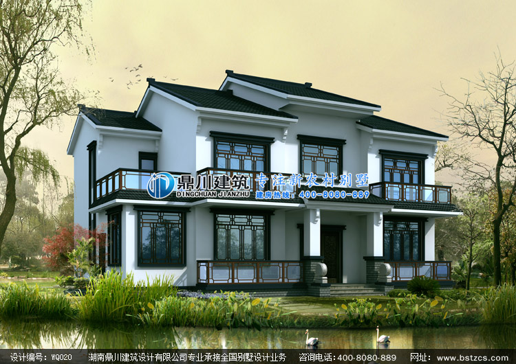 WQ020二層帶陽臺中式自建別墅設計圖效果圖,鼎川建筑新中式別墅私人定制設計