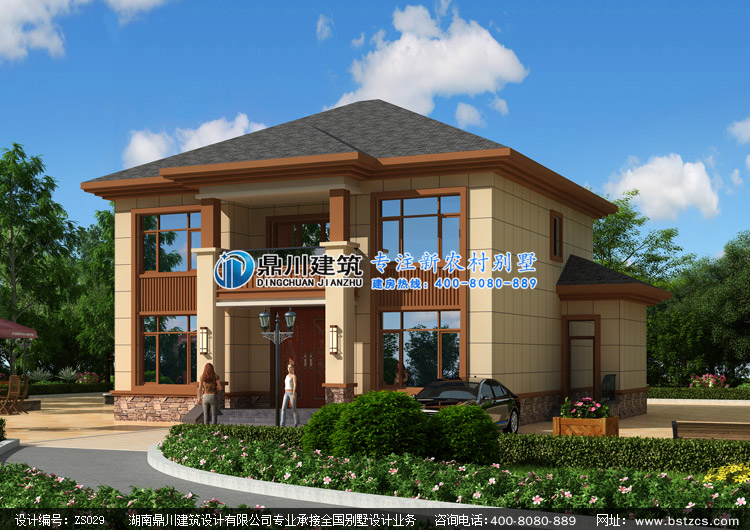 ZS029新農(nóng)村二層小別墅房屋設(shè)計(jì)圖紙效果圖,鄉(xiāng)村二層自建小別墅設(shè)計(jì)圖外觀效果圖