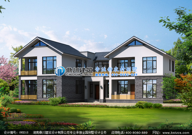 首頁 > 設(shè)計(jì)案例 > GWK018二層簡(jiǎn)約中式自建房屋設(shè)計(jì)圖紙外觀效果圖,新中式二層別墅私人定制設(shè)計(jì)