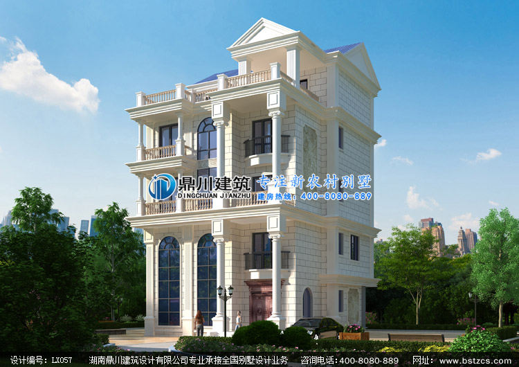 LX057農村五層帶露臺別墅設計圖紙外觀效果圖,鼎川建筑多層別墅定制設計圖紙